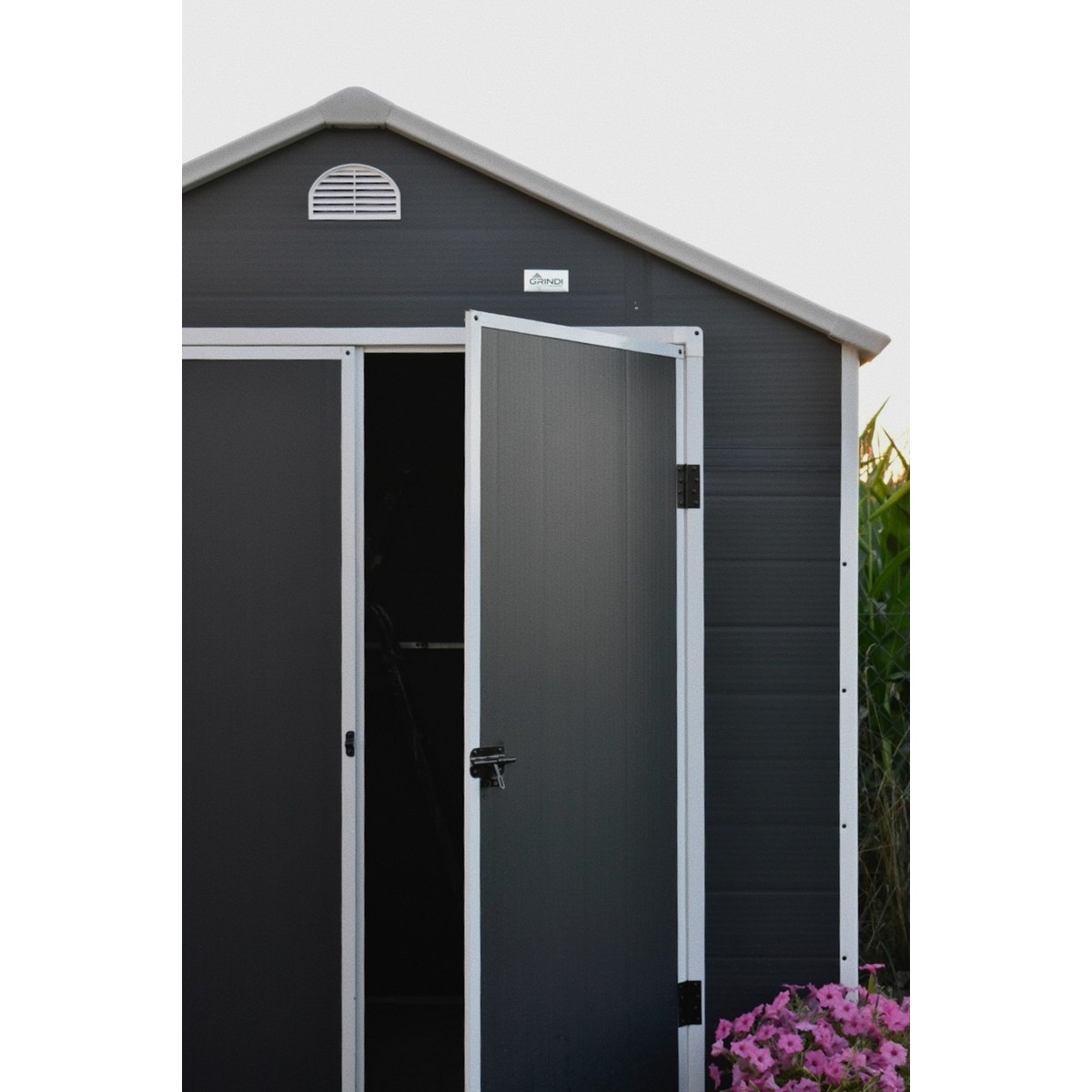 Ventilační otvory zajišťují dobrou cirkulaci vzduchu. Domek má jedno okno z polykarbonátu.